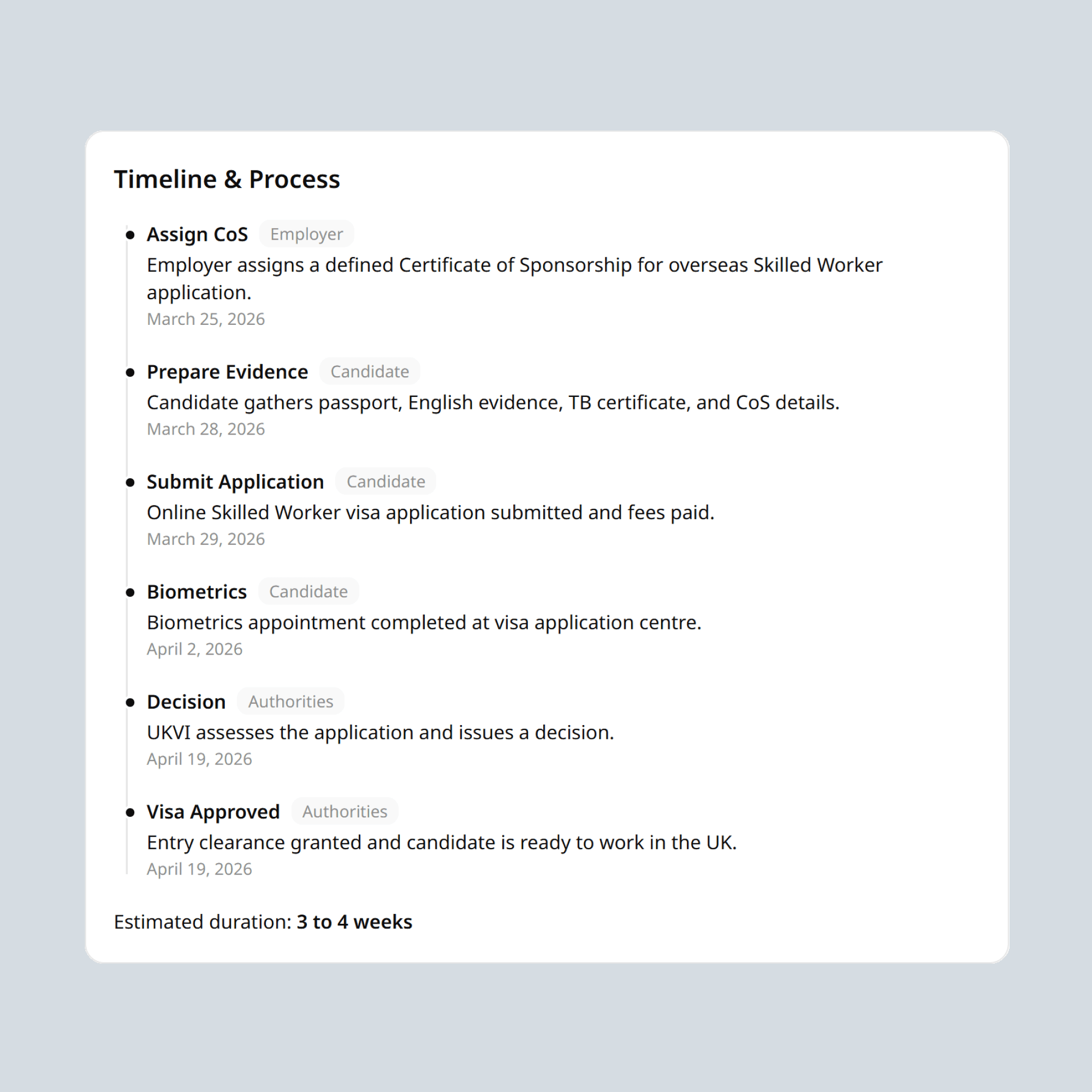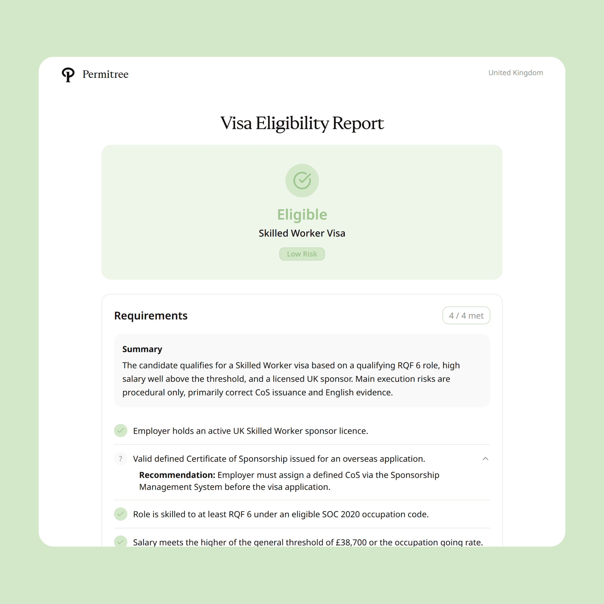 Our intelligent system analyses your case to instantly tell you if your candidate can get a work permit and how long it might take.