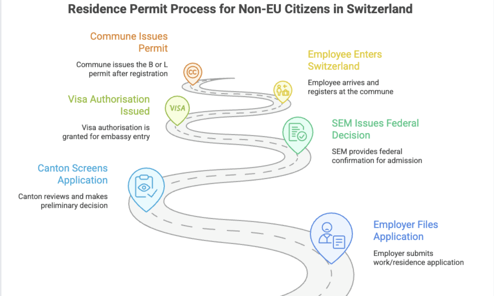 For third-country nationals, the processing times vary by canton and workload. From our experience, the timeline from applying until SEM approval is 3-12 weeks.